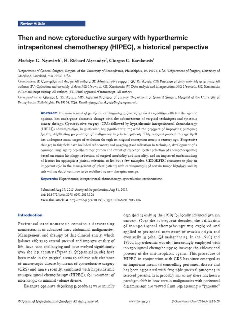 Then and Now - Cytoreductive Surgery With Hyperthermic Intraperitoneal ...