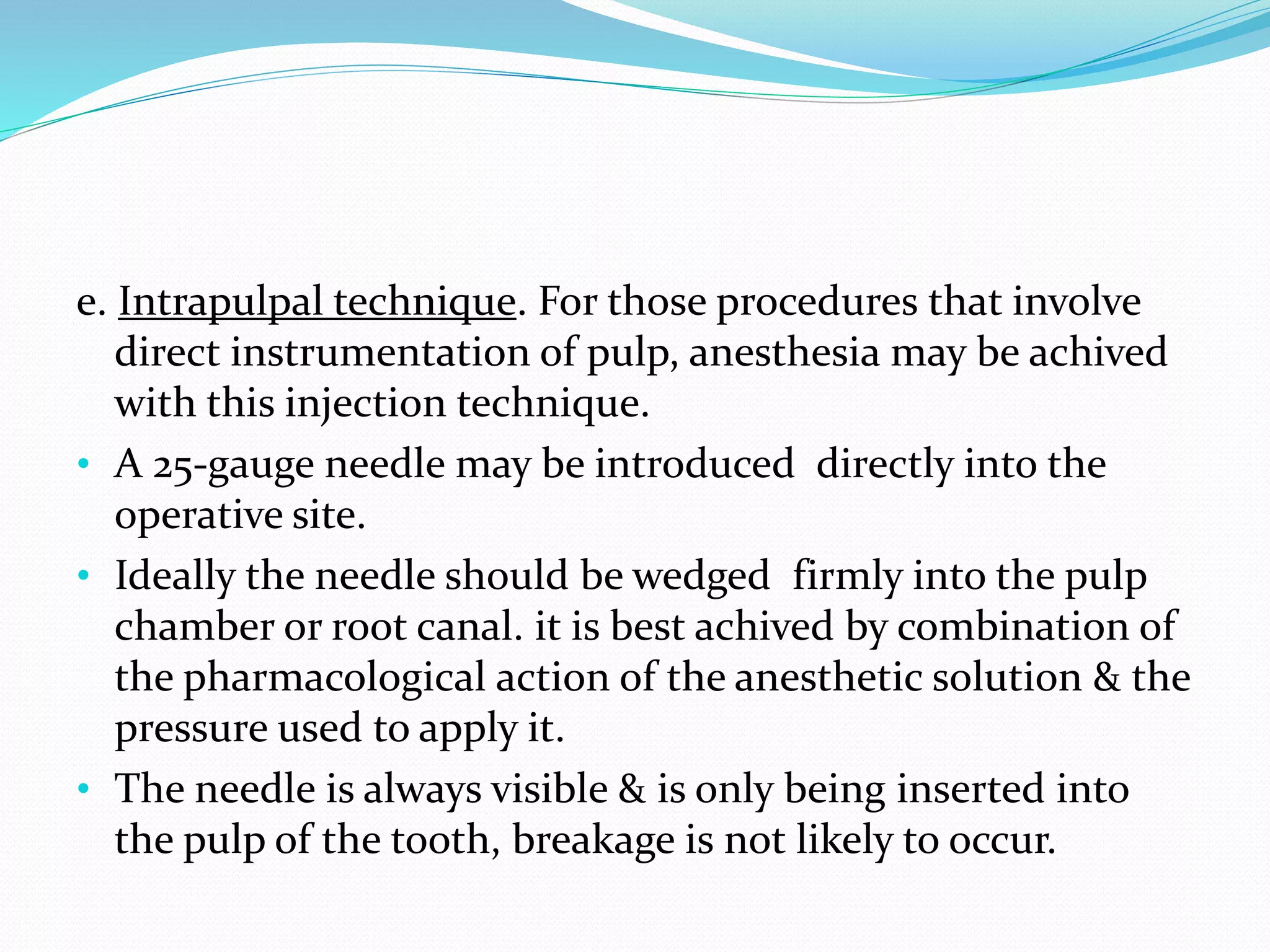 Dental anaesthesia By Ebrahim Patel Intraosseous intraligamentary ...