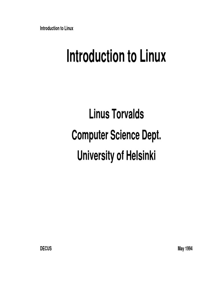 Introduction To Linux: Linus Torvalds Computer Science Dept. University ...