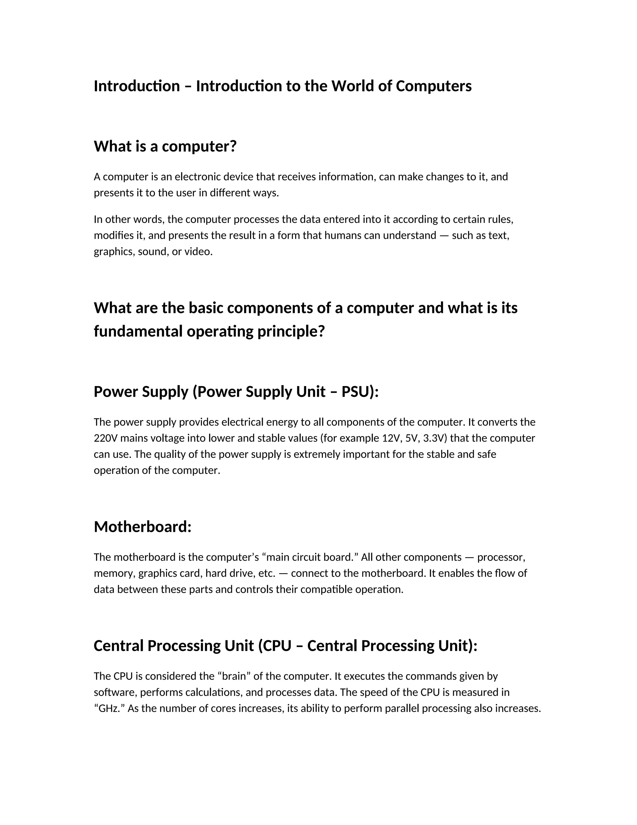 Introduction to the World of Computers (Hardware & Software) | DOCX