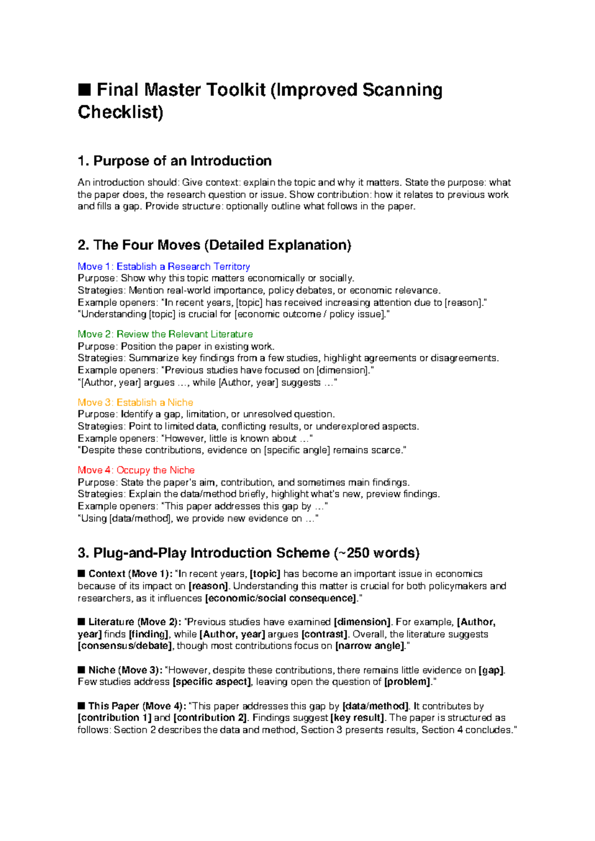 Final Exam Introduction Writing Toolkit (Improved Scanning Checklist ...