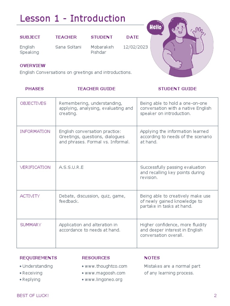 English Greetings Lesson Plan at Dina Mcalpin blog
