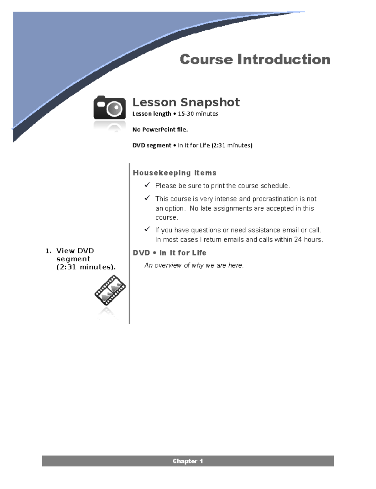 Notes chapter 1 - December course Dr. Dean - Course Introduction Lesson ...