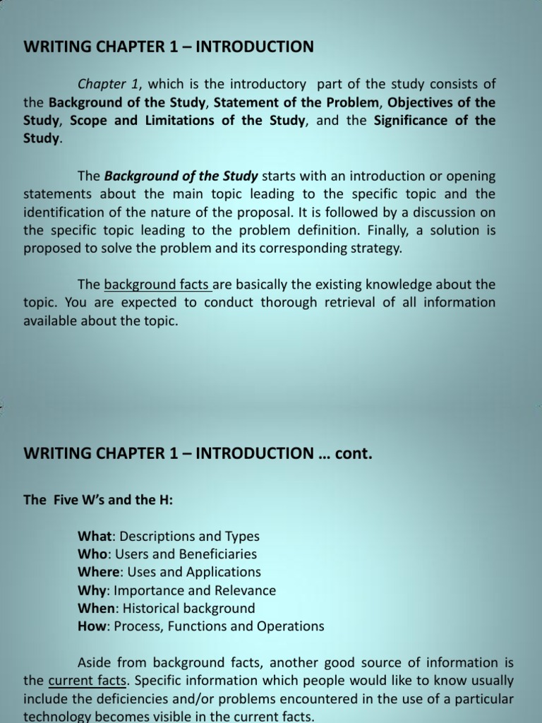 Writing Chapter 1 - Introduction: Chapter 1, Which Is The Introductory ...