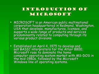 Microsoft corporation - Microsoft corporation INTRODUCTION founded by ...