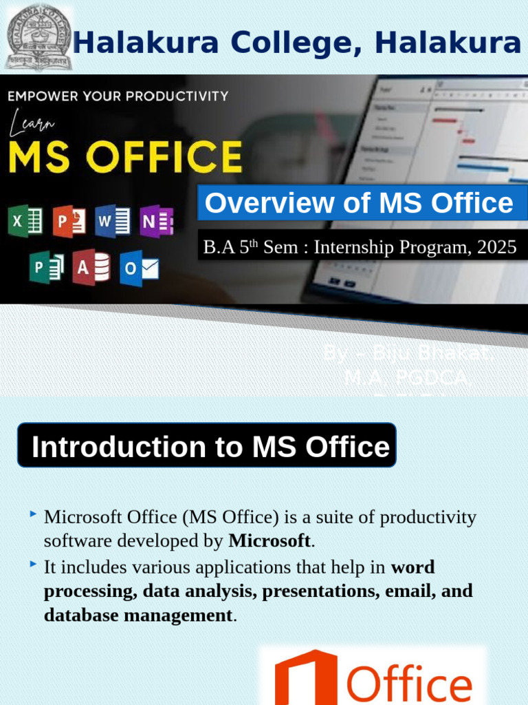 Introduction to MS Office - Introduction to MS Office Microsoft Office ...