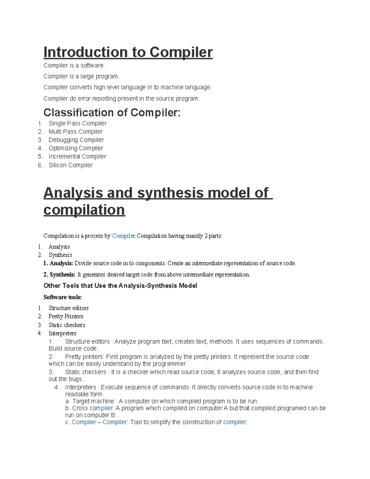 Introduction to Compiler Design (COMP 101) - Unit 1 Overview - Studocu