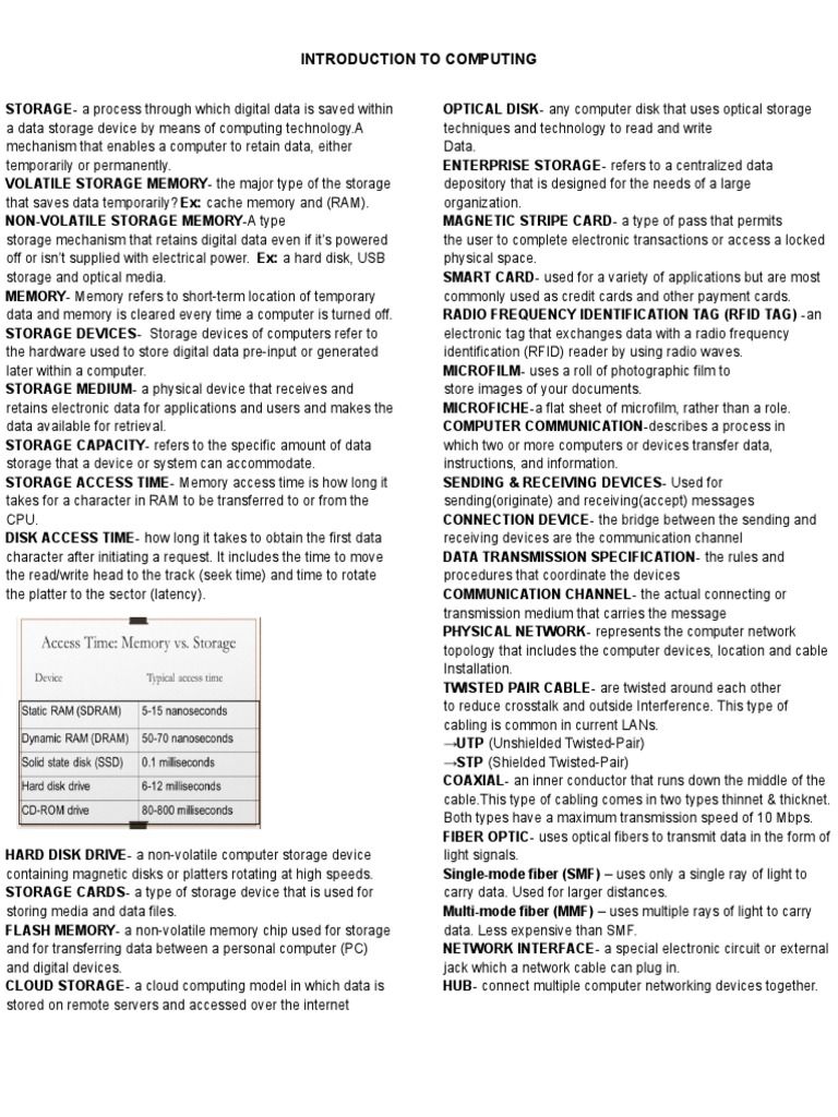 Introduction To Computing | PDF | Computer Data Storage | Computer Network