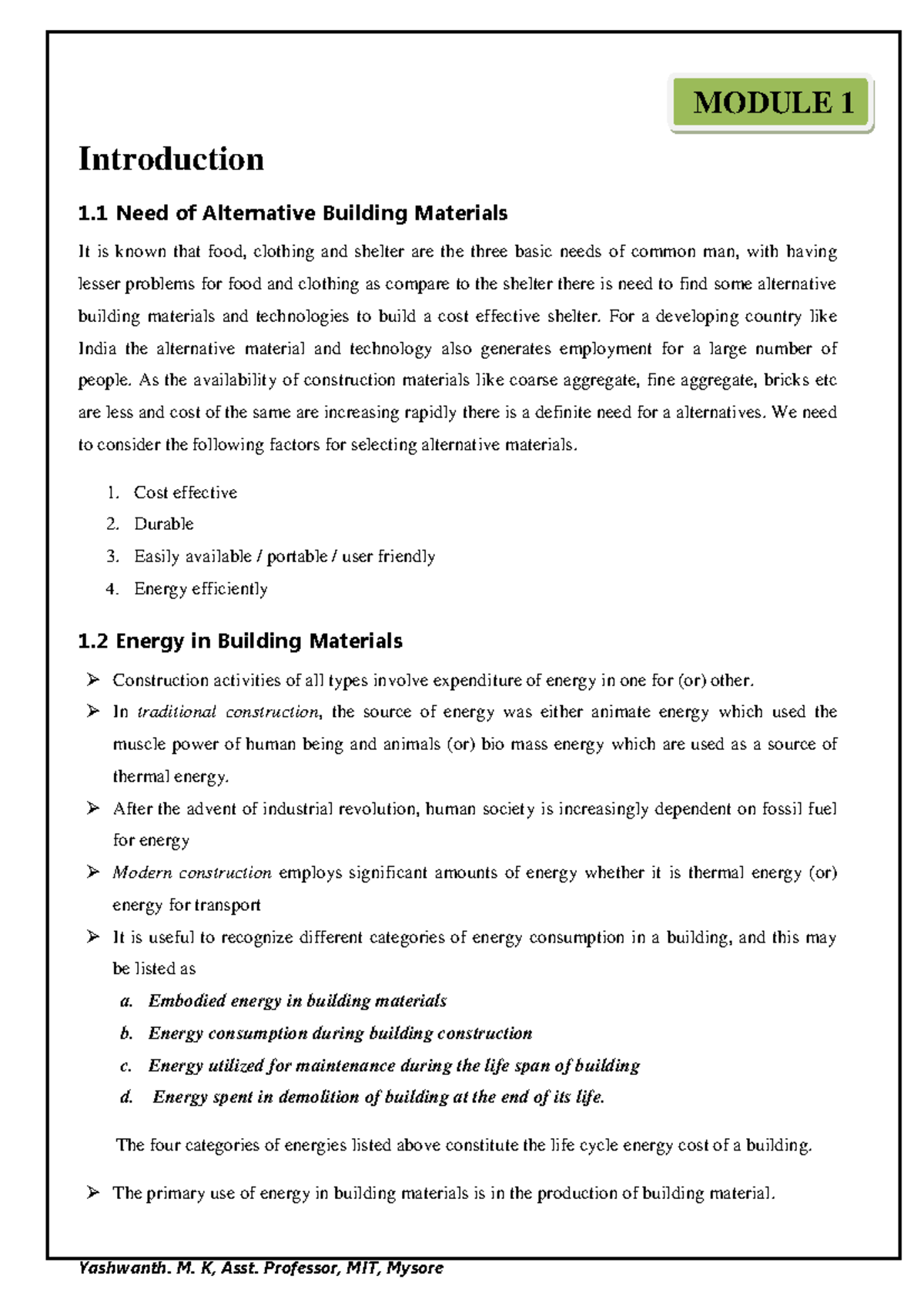 Module 1: Need for Alternative Building Materials and Energy Efficiency ...