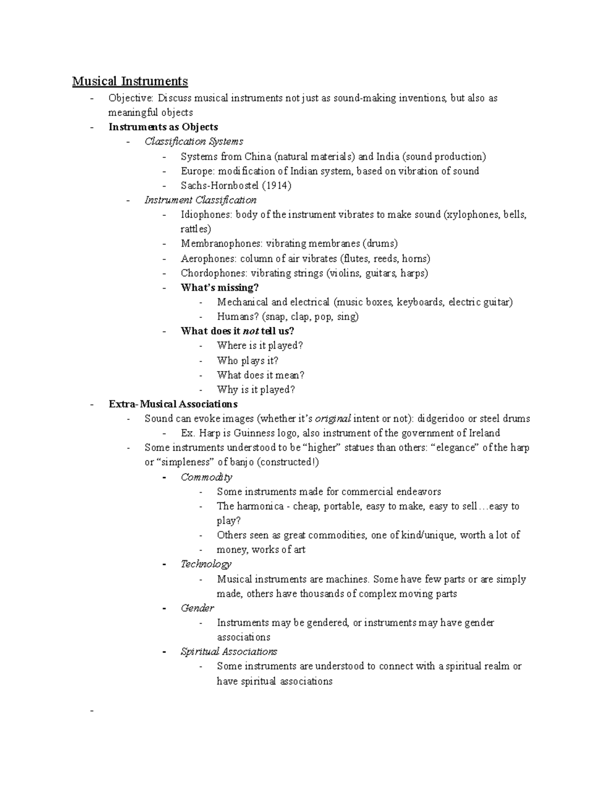 MUS 133 Notes: Module 2 - Musical Instruments Overview by Dr. Smith ...