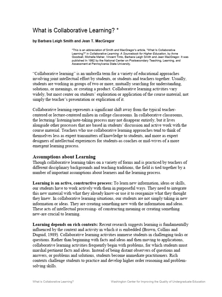 Reflections on Collaborative Learning about Collaborative Learning ...