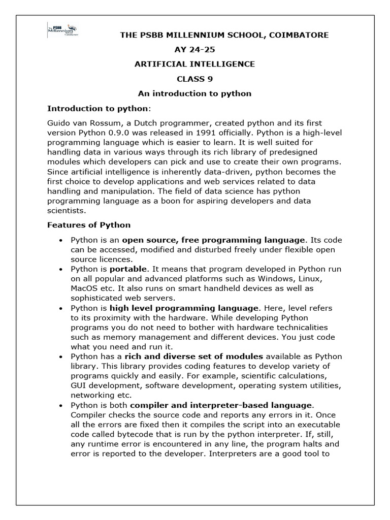 Python Basics for AI Class 9 | PDF | Python (Programming Language ...