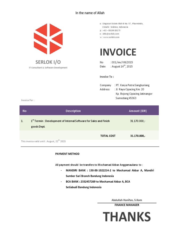 Invoice for PT Karya Putra Sangkuriang | PDF
