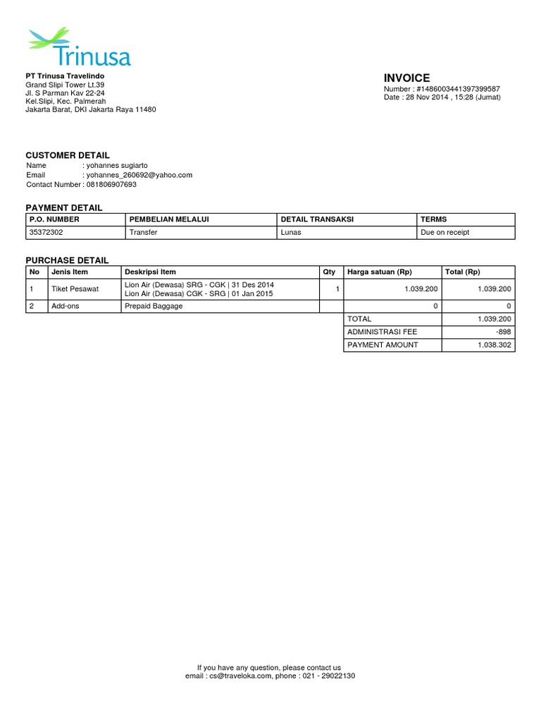 Indonesia Traveloka Invoice Template In Word And PDF Formats