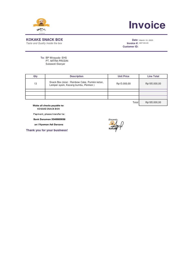 Snack Box Invoice for PT. Mitra Prodin | PDF