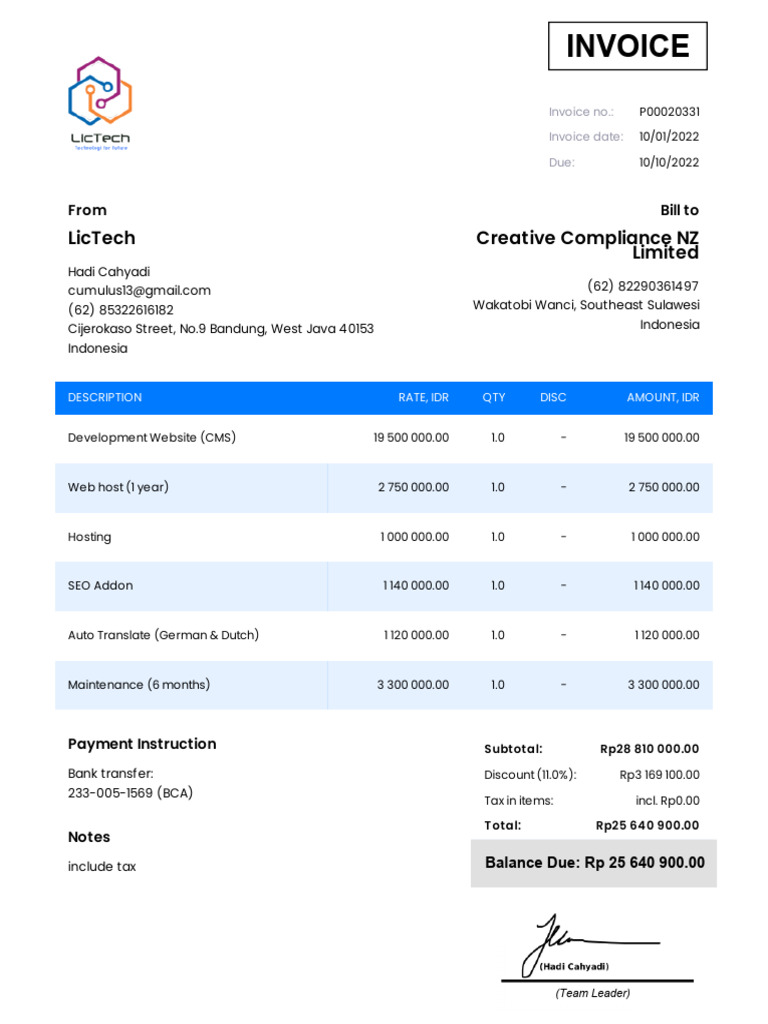 Indonesia STIKES Bina Usada Bali Invoice Template in Word and PDF ...