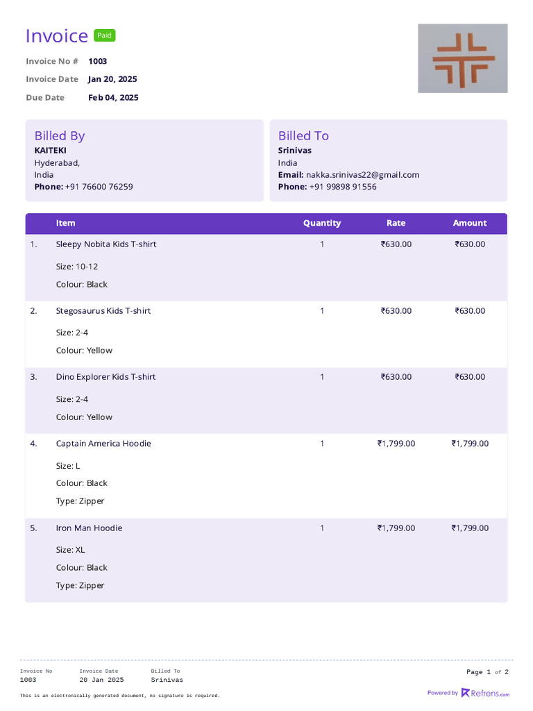 Invoice for Kids' Apparel Purchase | PDF | Invoice | Business Documents