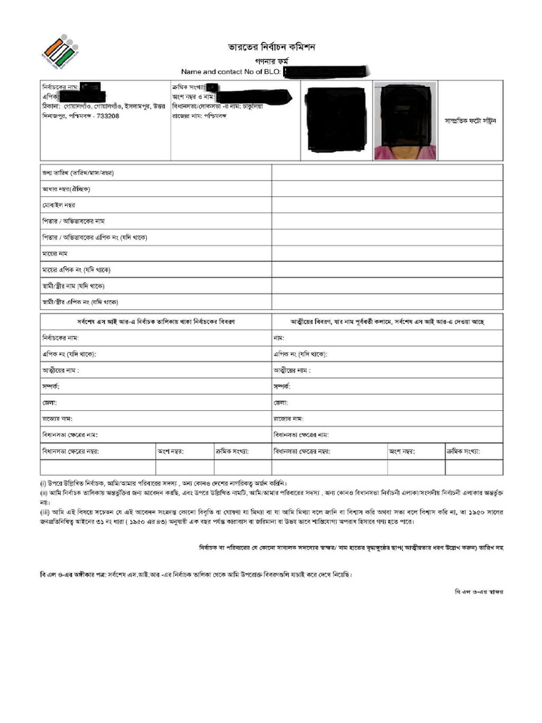Enumeration Form_Bengali (3) | PDF