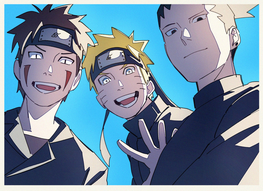 Safebooru - 3boys black hair black jacket blonde hair blue background ...