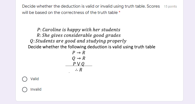 Solved Decide whether the deduction is valid or invalid | Chegg.com