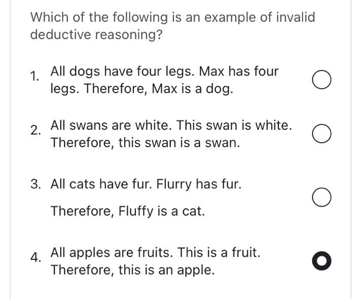 Constructing Deductive Arguments: Valid and Invalid Examples | Course Hero