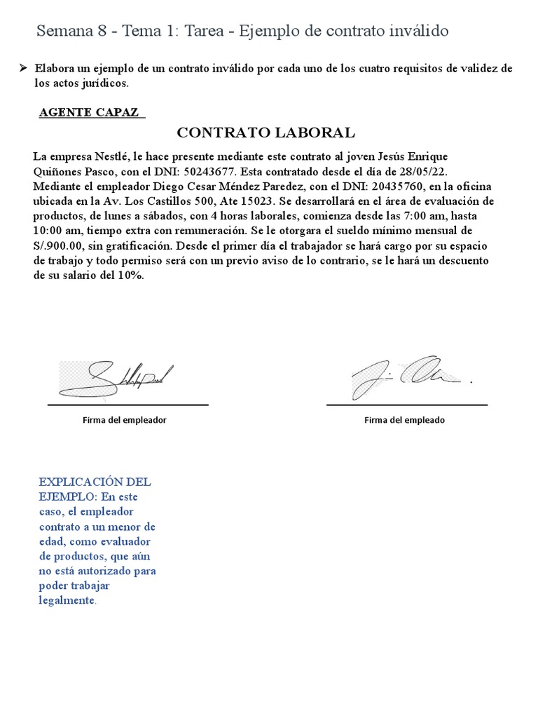 Ejemplo de contrato inválido - Una de las partes es incapaz de realizar ...
