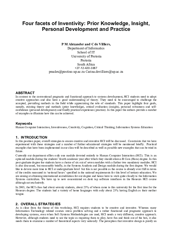 (PDF) Inventivity in HCI Education