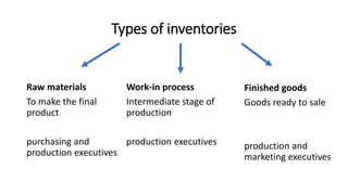 Types of Inventory:- There are four main inventory types: * Raw ...