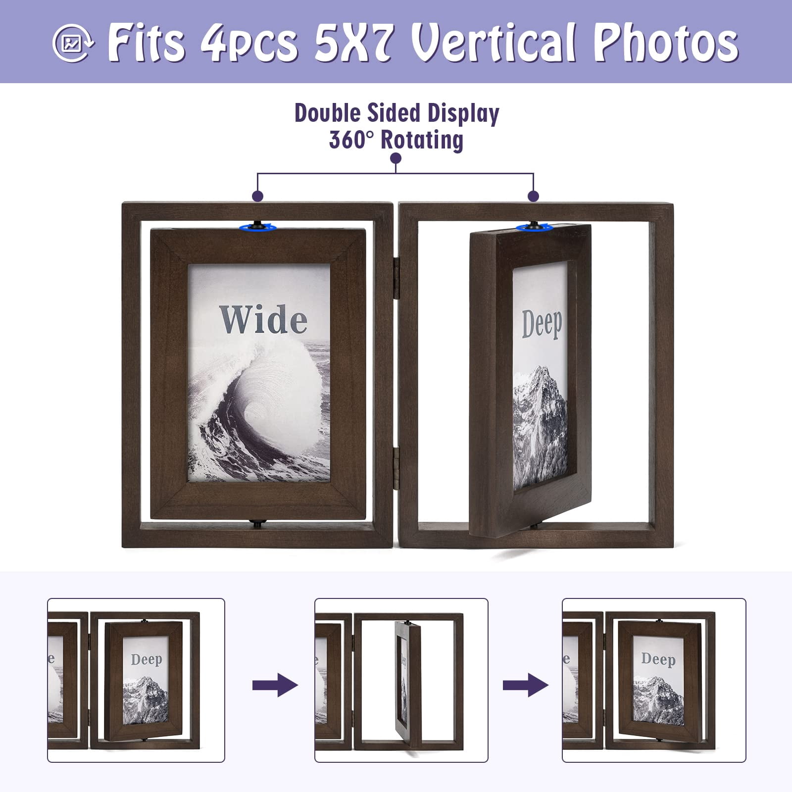 5x7 Picture Frame Rustic Wood Hinged Folding Double Photo Sided Display ...