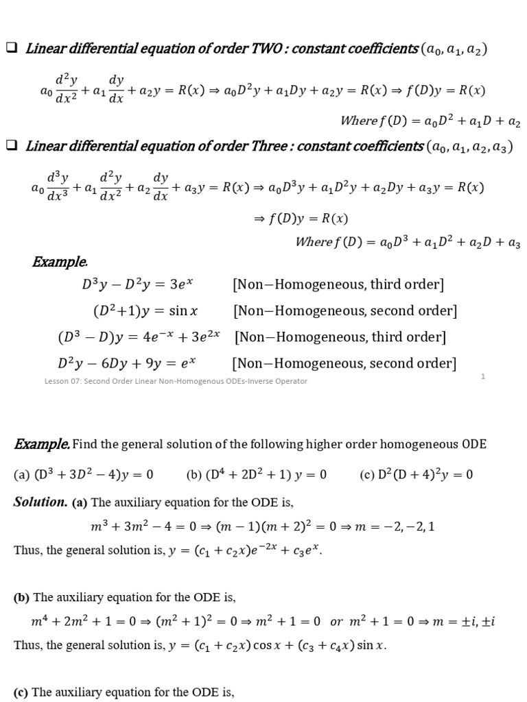 Inverse Operator Method for ODEs | PDF | Ordinary Differential Equation ...