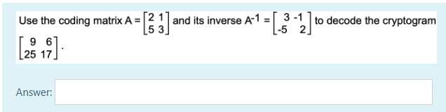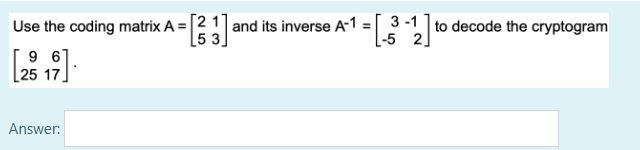 Solved Use the coding matrix A=[2513] and its inverse | Chegg.com