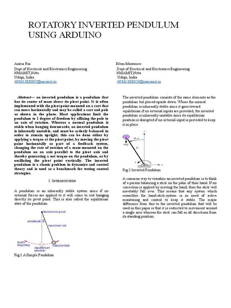 Rotatory Inverted Pendulum Using Arduino | PDF | Systems Theory ...