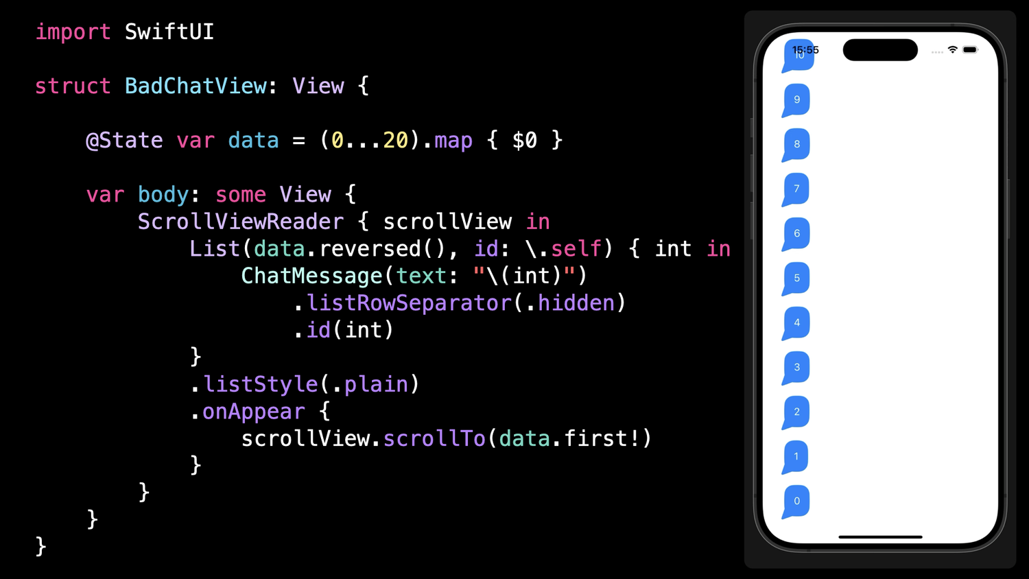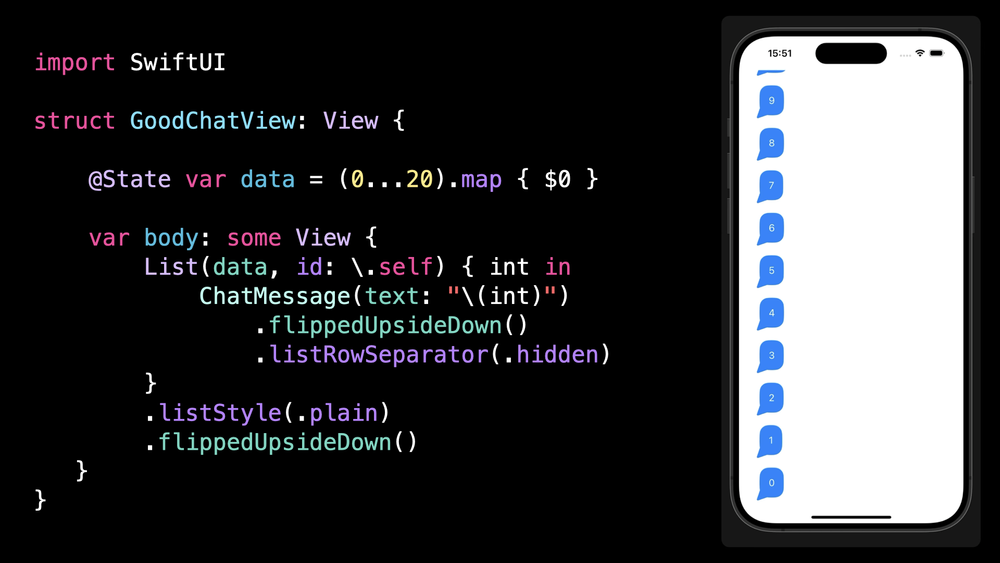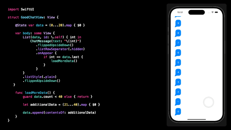 Building the inverted scroll of a messaging app โ Swift with Vincent