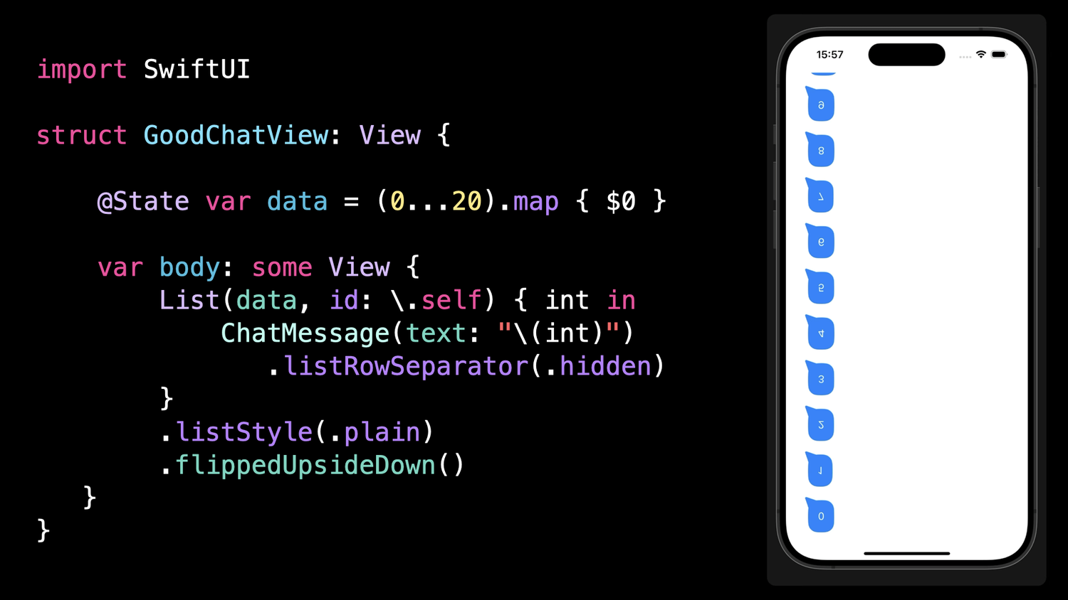 Building the inverted scroll of a messaging app — Swift with Vincent