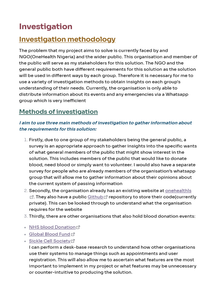 Research For Planning The Investigations