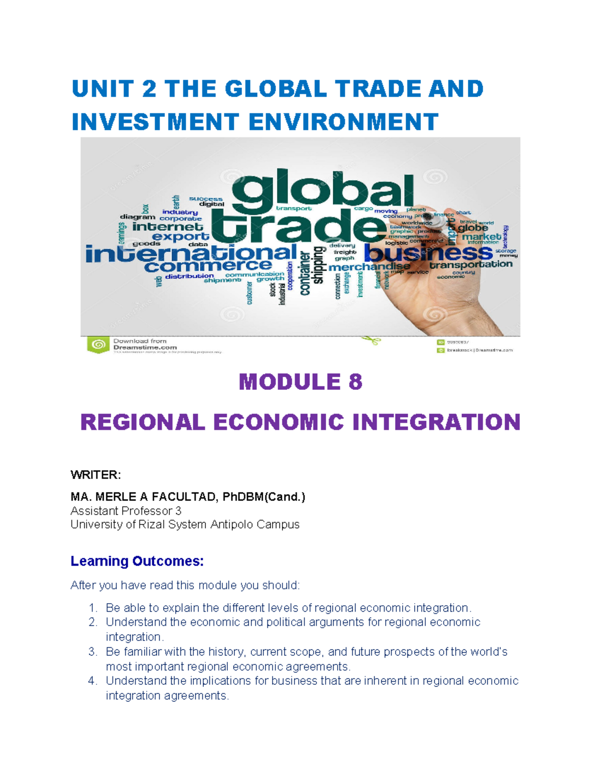 Module-8 - UNIT 2 THE GLOBAL TRADE AND INVESTMENT ENVIRONMENT MODULE 8 ...