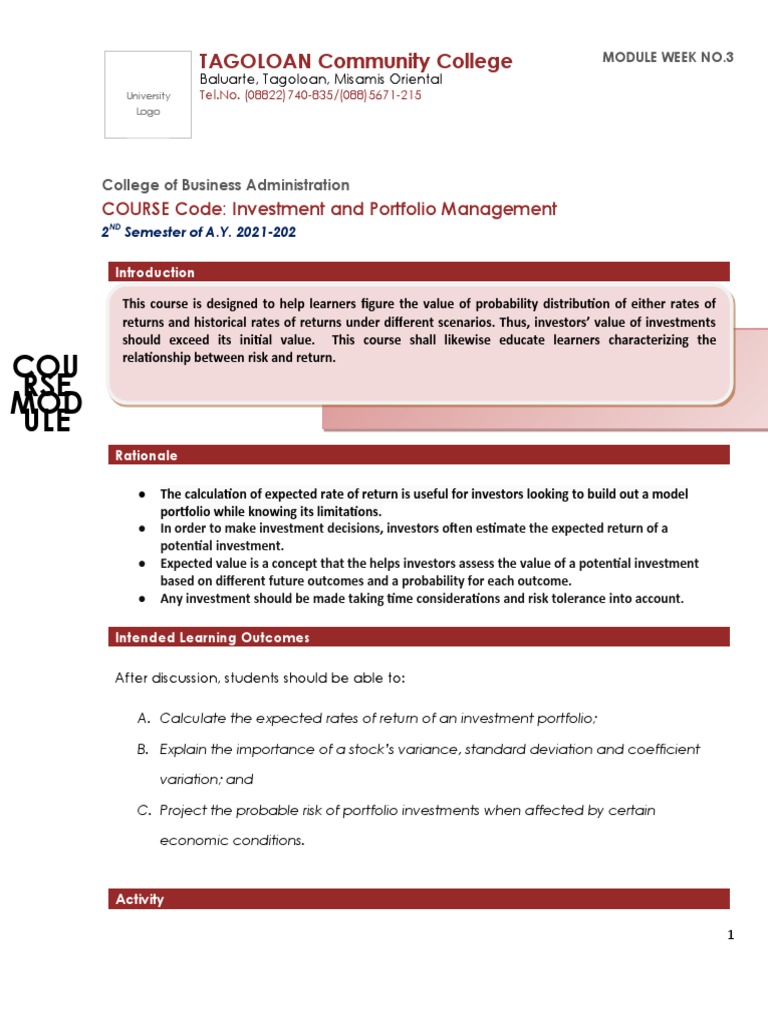 Module 3 Investment and Portfolio | PDF | Investing | Variance