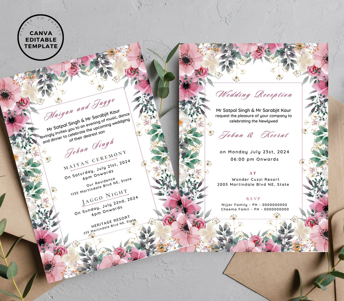 Editable Sikh Wedding Invitation Suite, Anand Karaj Invitation, Punjabi ...