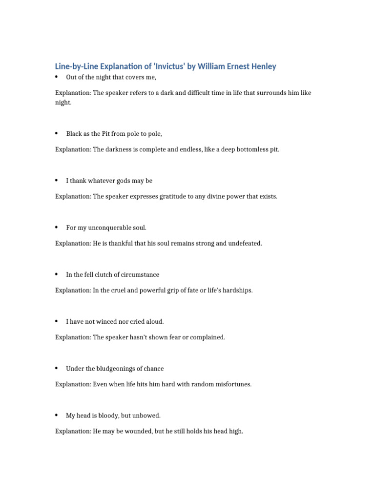 Detailed Line By Line Explanation of INVICTUS a poem by William Ernest ...