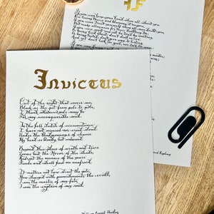Handwritten Calligraphy 'invictus' Poem Print: Inspirational Gift - Etsy UK