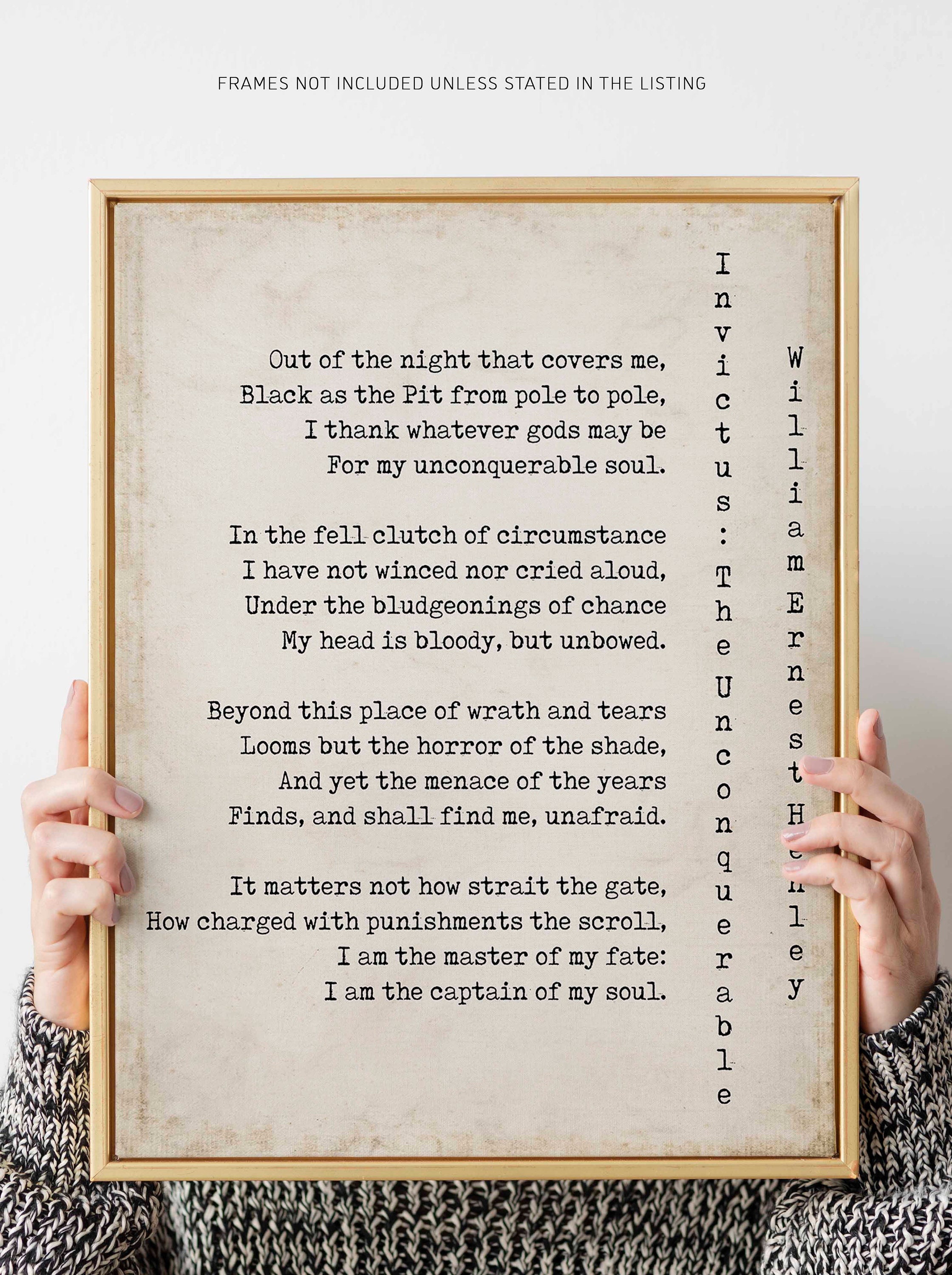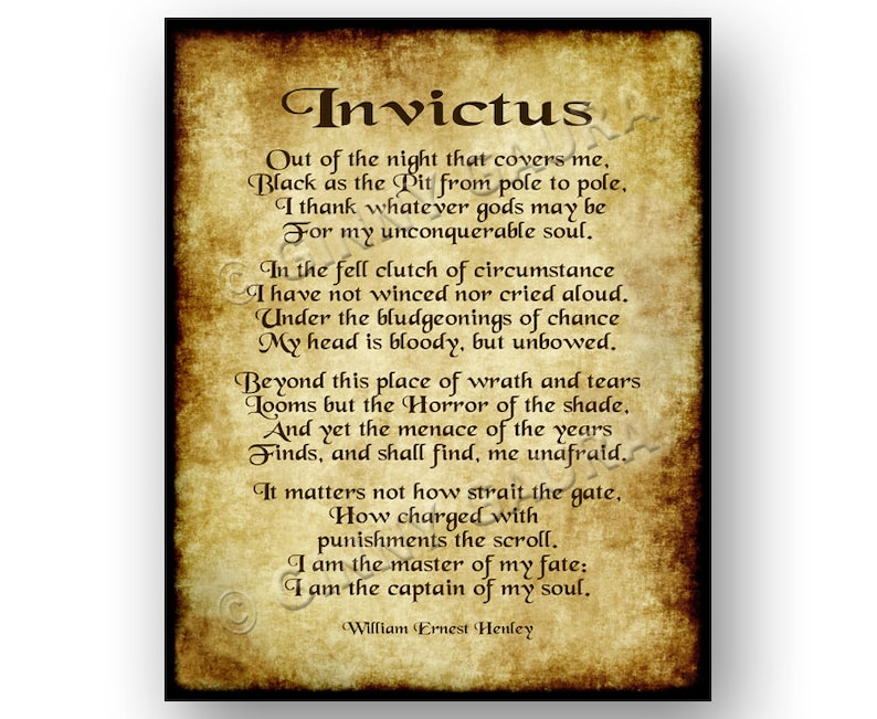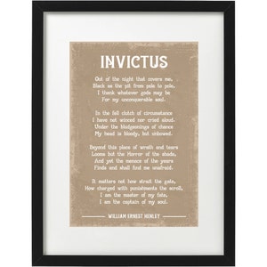 Invictus Poem by William Ernest Henley Inspirational | Etsy