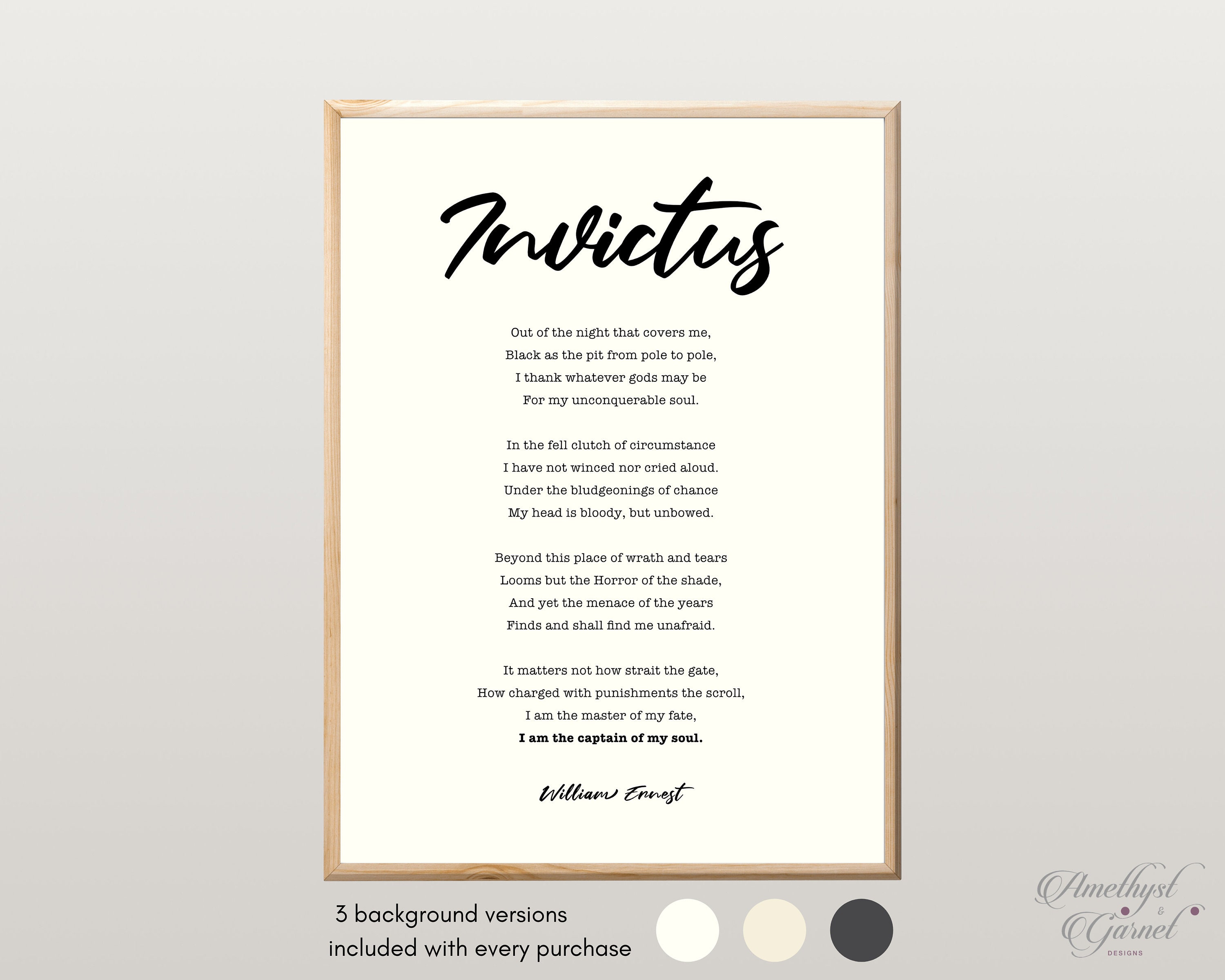 Invictus poem | Etsy