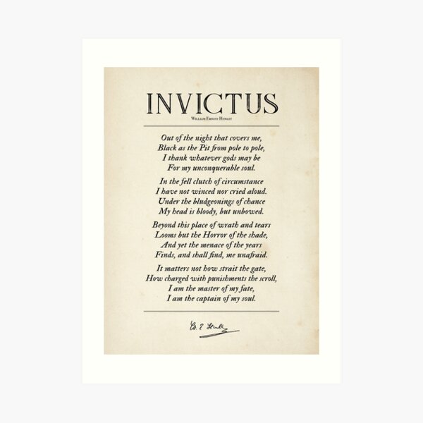 "Invictus Poem by William Ernest Henley" Art Print for Sale by ...
