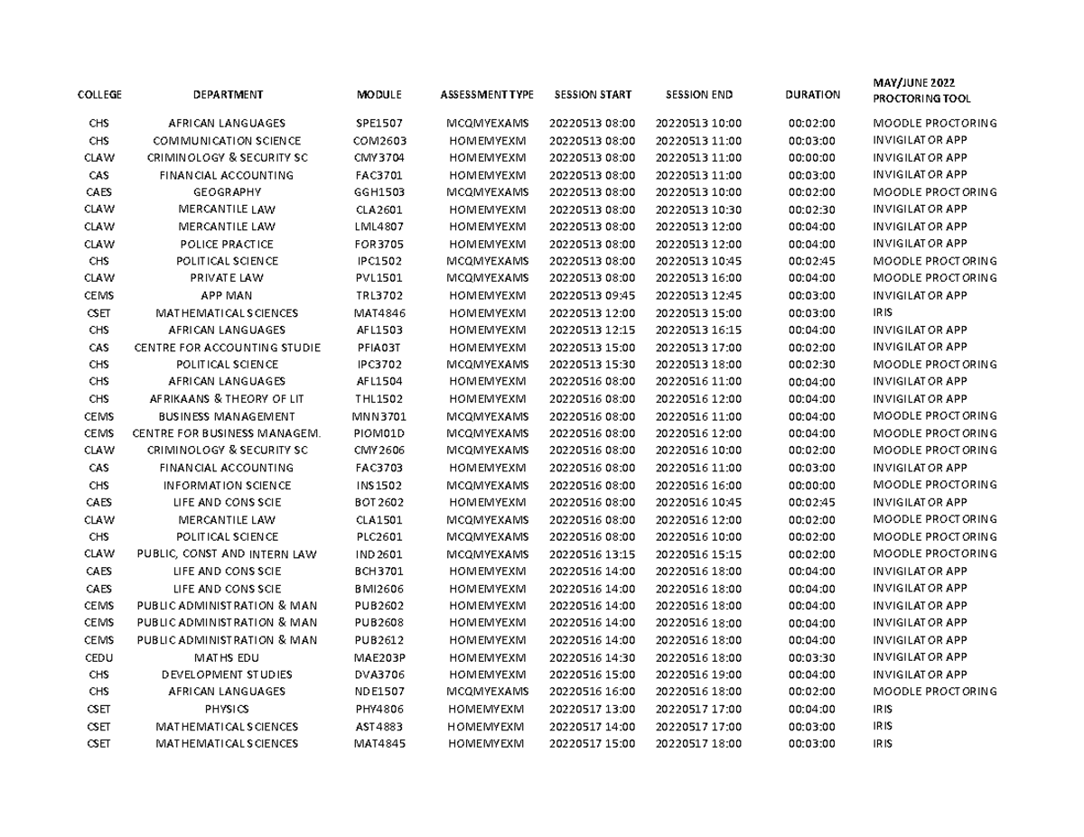 EXAM MAY JUNE 2022 Invigilated AND Proctored Modules - COLLEGE ...