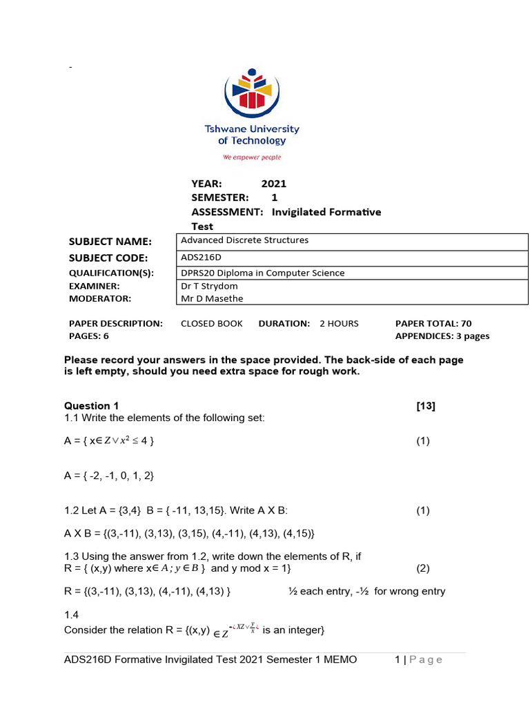 ADS216D Formative Test Invigilated | PDF | Mathematical Proof ...