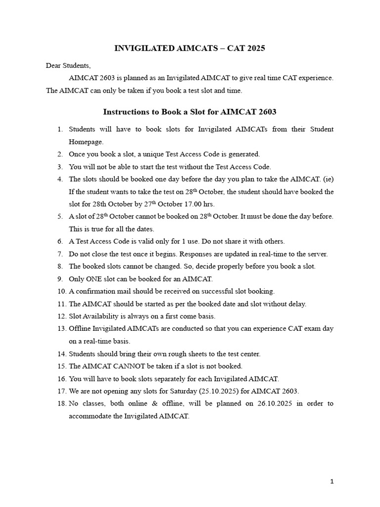 CAT25 Invigilated AIMCAT Info | PDF | Chess | Chess Theory