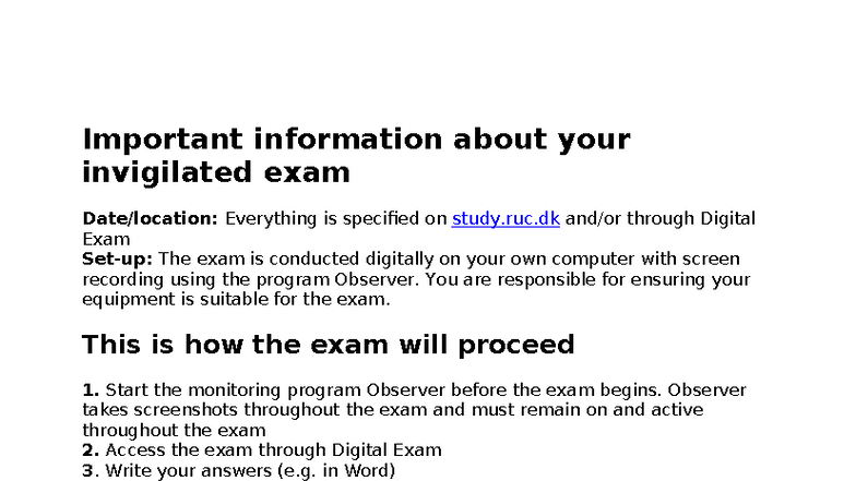 INM Invigilated Exam Guidelines and Checklist - Studocu