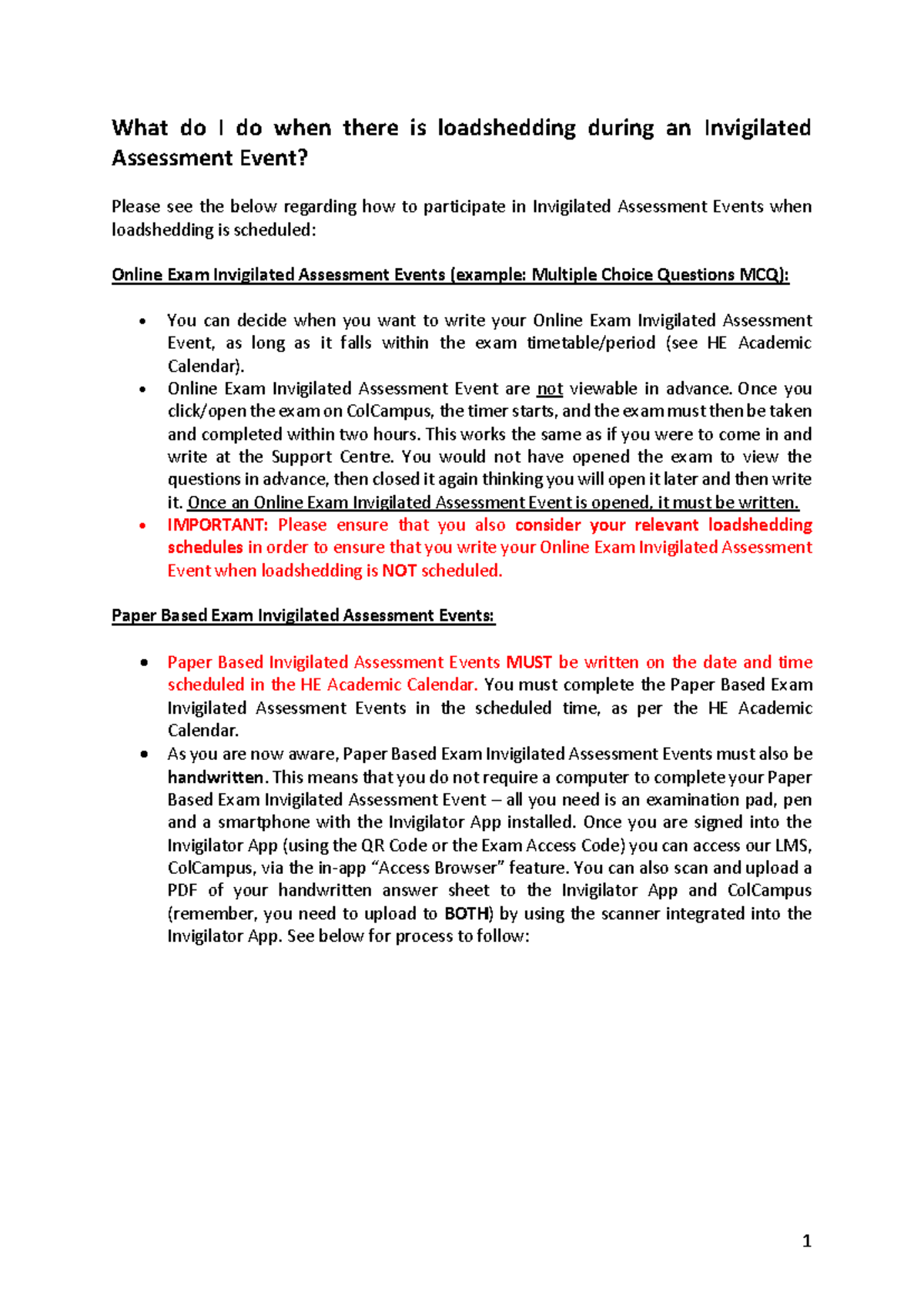 Announcement 10 - Guidelines for Loadshed during Invigilated ...
