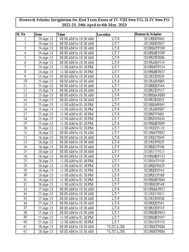 Invigilation Duty Chart Even End Term May 2018 | PDF