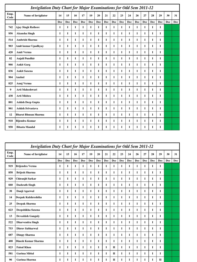 Invigilation Duty Chart 2011-12 | PDF | Sikhism